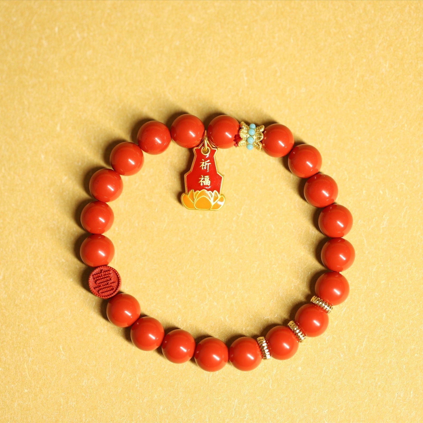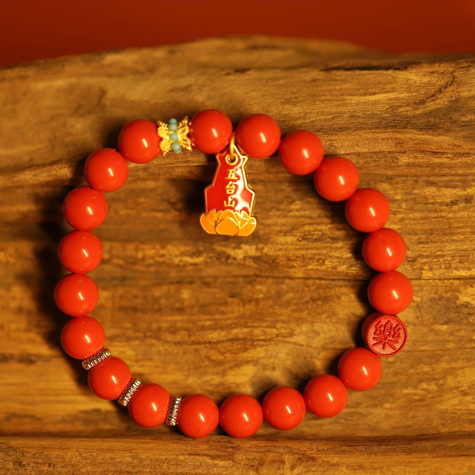 - How many beads are on the bracelet? The bracelet features multiple uniformly sized cinnabar beads, creating a harmonious and balanced look.