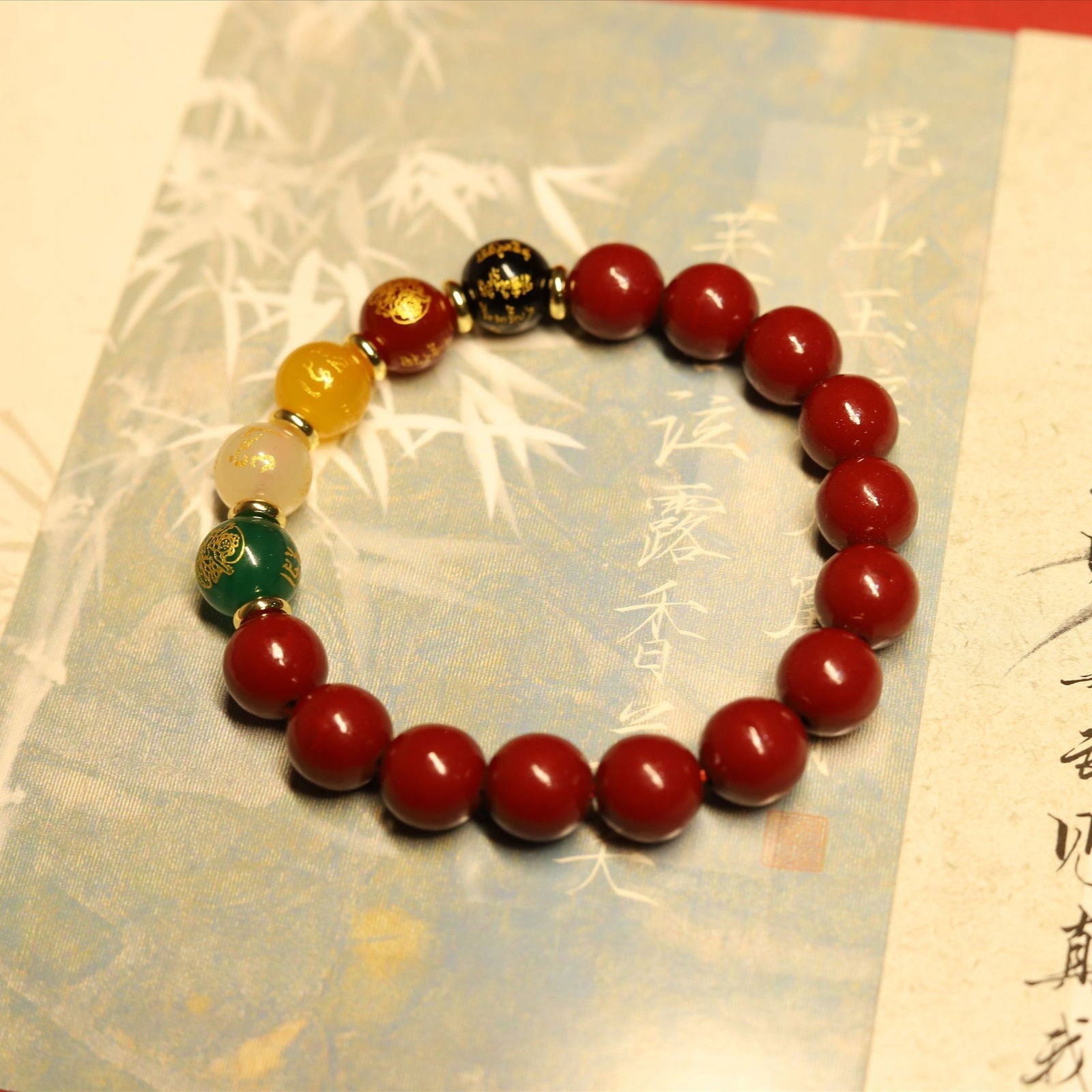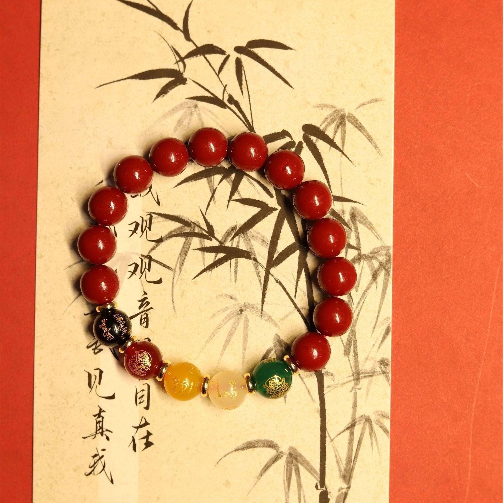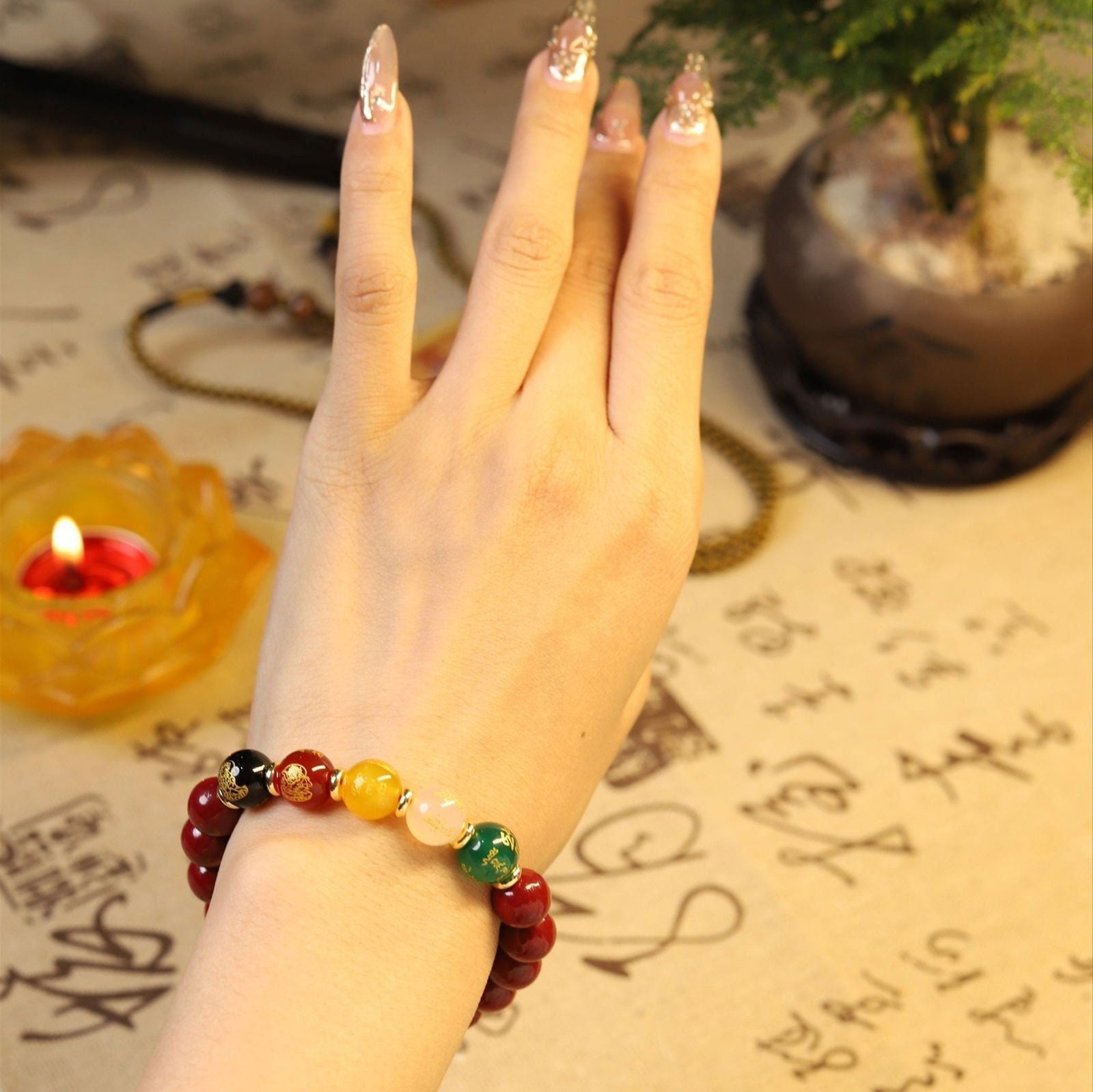 Discover the enchanting Five Directions God of Wealth Bracelet, a stunning masterpiece designed to attract abundance and elevate your style. Crafted from high-quality original mine cinnabar beads and intricately carved multicolored agate, this bracelet represents a harmonious blend of art and spiritual significance.
