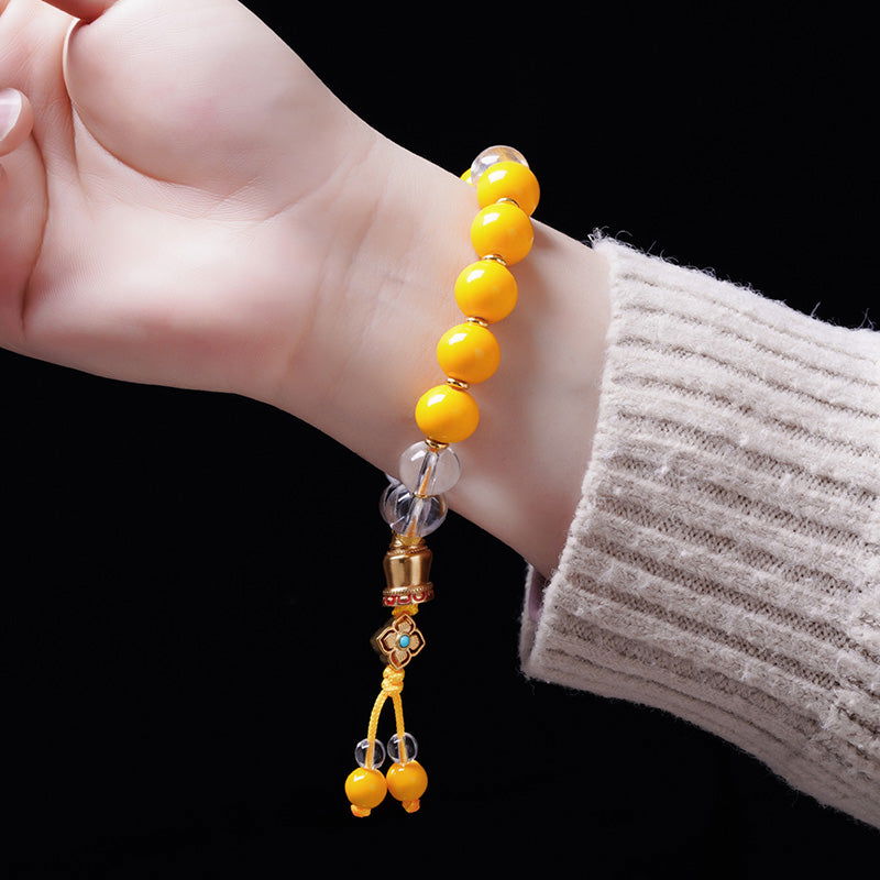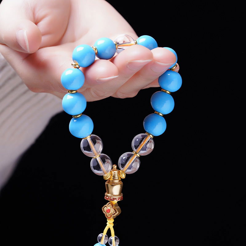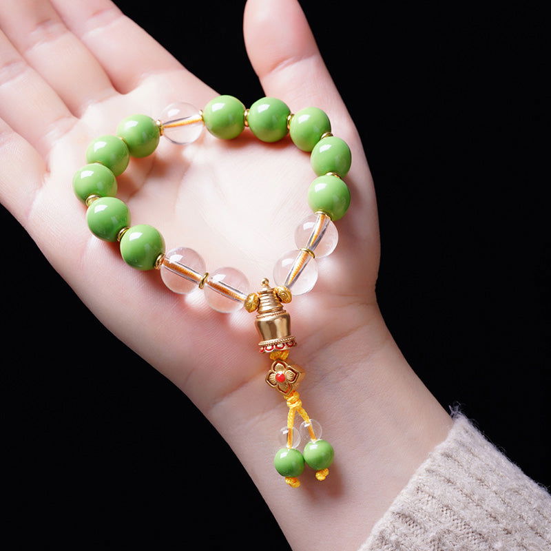 Embrace the rich tapestry of cultural heritage and spiritual prosperity with our exquisite Thangka Buddha Great White Pagoda Bracelet. Each piece is masterfully crafted from premium ceramic and clear crystal, featuring a charming design that pays homage to the illustrious Great White Pagoda of Mount Wutai, a monument revered for its embodiment of peace and spirituality.