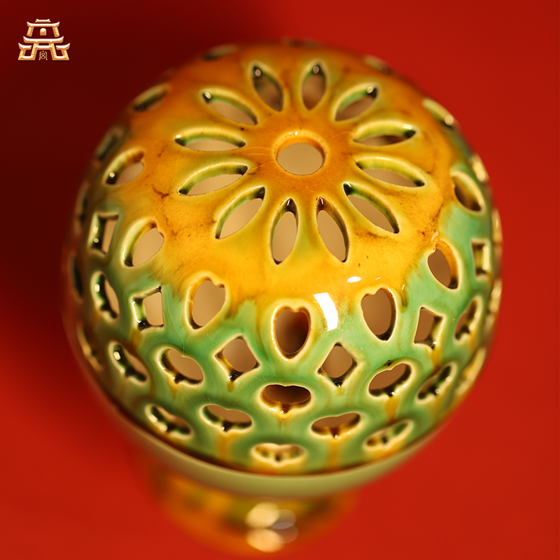 This incense burner is made from high-quality liuli, known for its durability and vibrant glaze.
