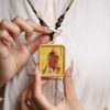 Embrace the essence of courage and loyalty with our Red Robe Guan Gong Thangka Necklace. This beautifully crafted pendant, measuring 4.5×5.5 cm, is made from high-quality brass and adorned with vibrant mineral pigments. It depicts Guan Yu in his iconic green robe. This striking piece not only captures the legendary figure’s spirit but also serves as a powerful symbol of righteousness and bravery.