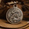 Thangka Buddha Silver Dragon Circle Pendant – Symbol of Power and Prosperity