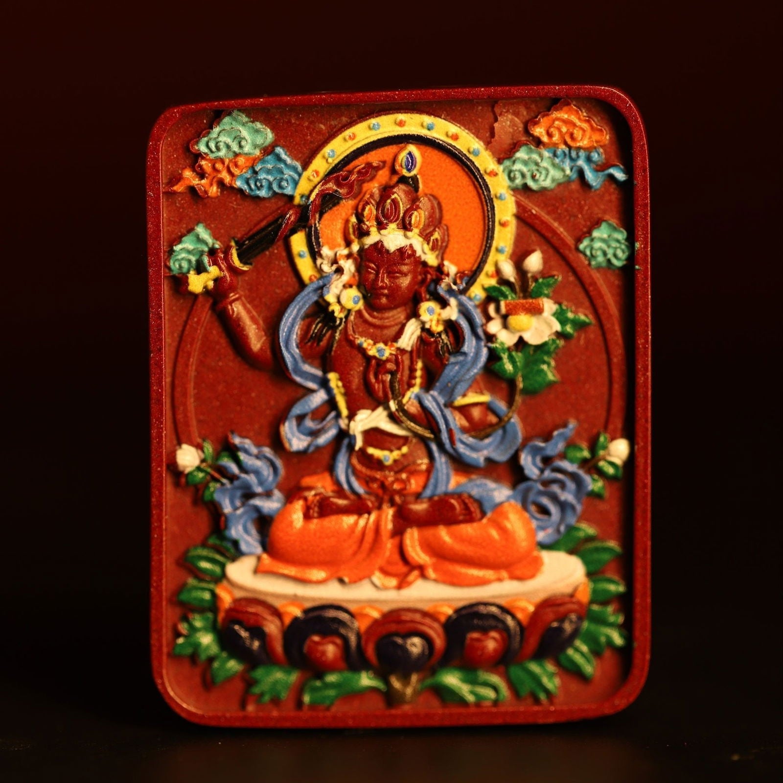 Thangka Buddha Manjushri Wisdom and Prosperity Cinnabar Pendant Necklace